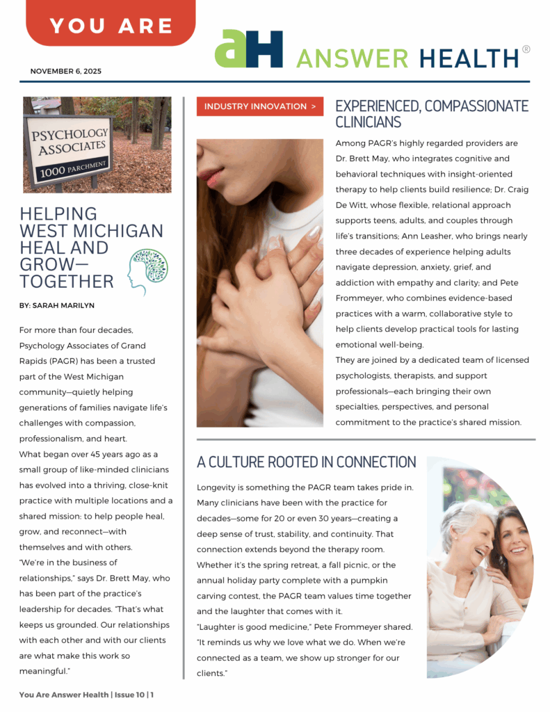 You Are Answer Health Practice Spotlight: Psychology Associates of Grand Rapids