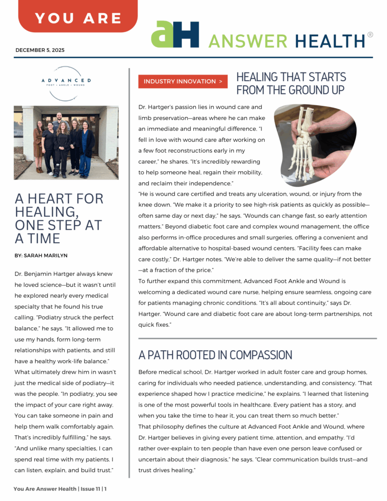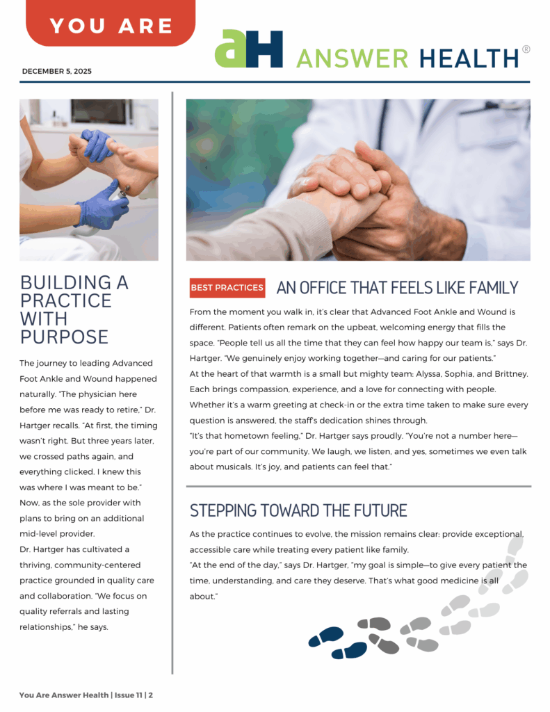 At Answer Health, your culture is your brand. Together, we are building a trusted, independent, physician-led network known for its dedication to delivering the highest quality care. As part of this effort, the "You Are Answer Health" spotlight series celebrates the innovative practices that embody our shared mission.