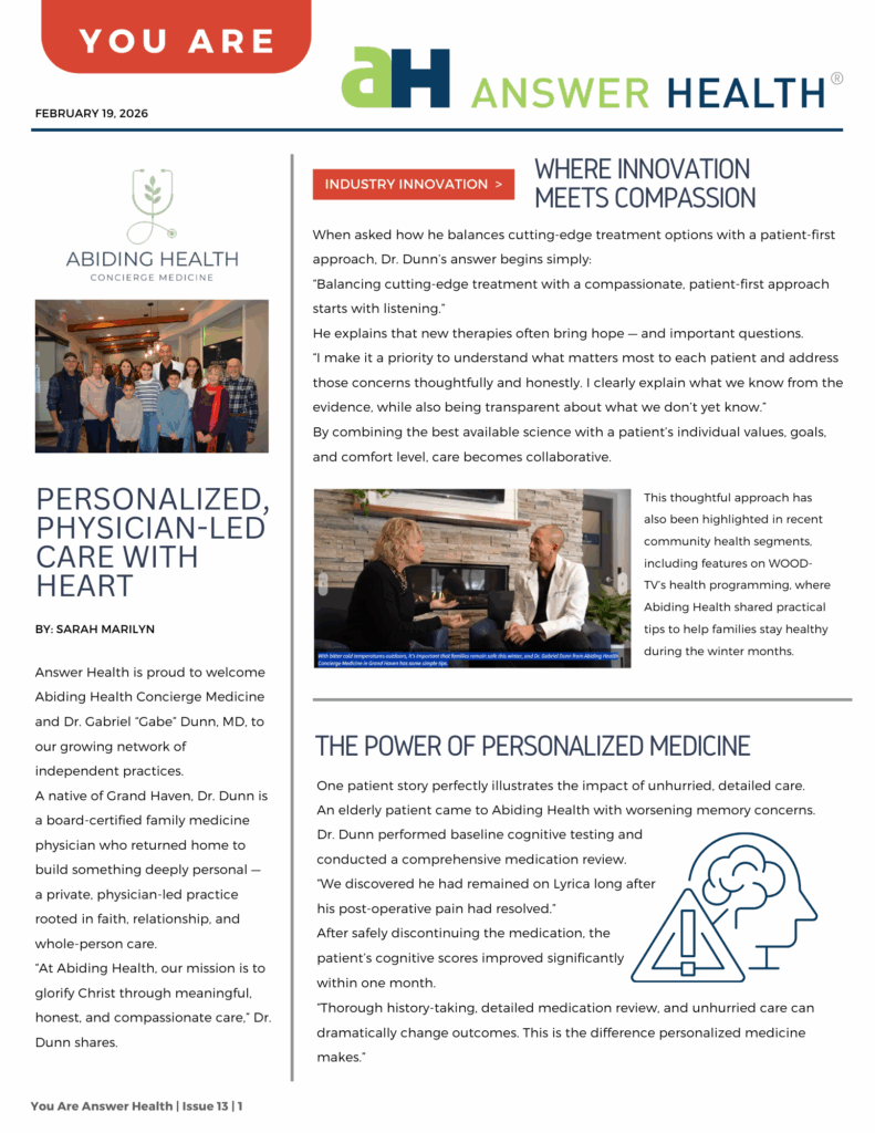At Answer Health, your culture is your brand. Together, we are building a trusted, independent, physician-led network known for its dedication to delivering the highest quality care. As part of this effort, the "You Are Answer Health" spotlight series celebrates the innovative practices that embody our shared mission.